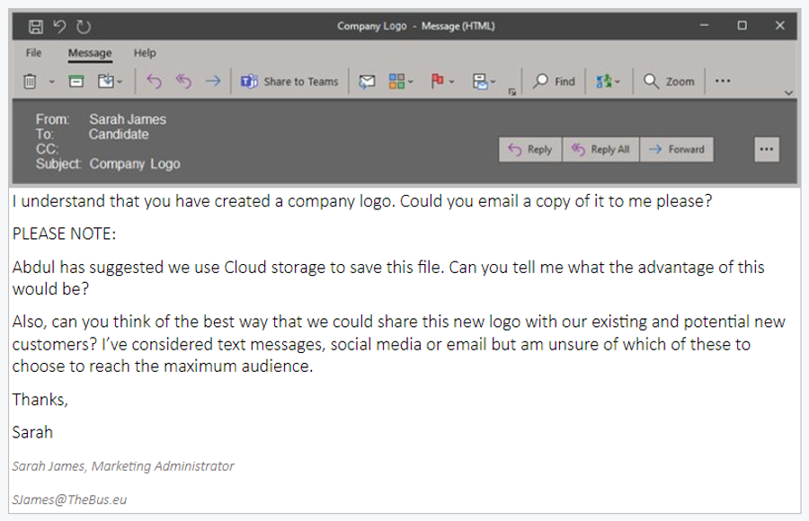 b) Address the email to SJames@TheBus.eu. (1 mark)